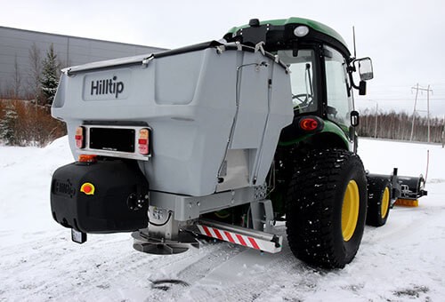 Hilltip IceStriker™ 12V electric tractor salt spreader is built in a lightweight poly hopper and mounted parts in stainless steel. These quality components provides you protection against corrosion and rust. Our unique tractor salt spreader and it’s control system helps you save money and reduce the impact on the environment, while achieving the same de-icing results as before!.