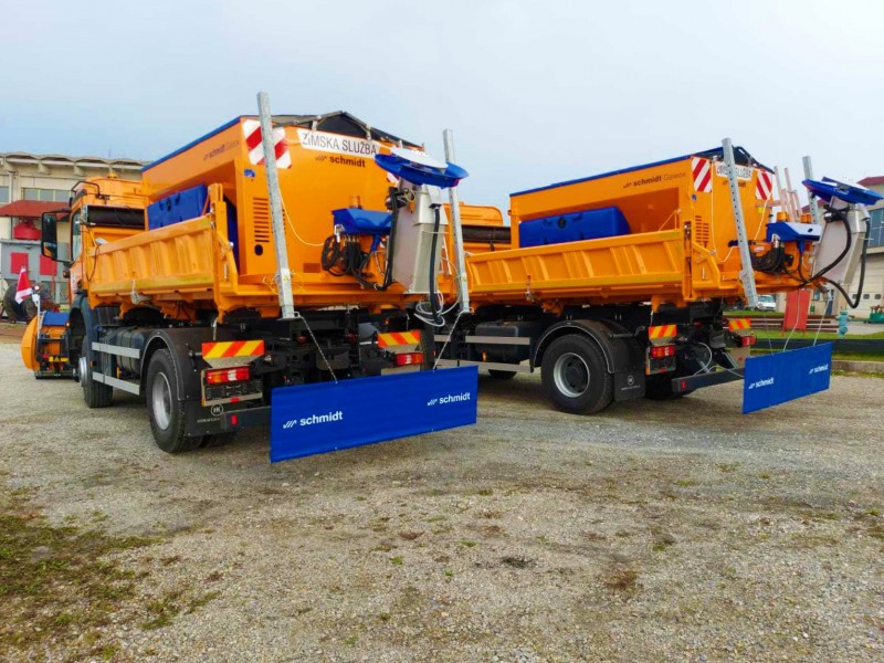 Stranki smo predali v uporabo dva nova snežna pluga Schmidt Tarron MS 32.1 ter dva posipalca Schmidt Galeox 40-30. Naši serviserji so opremo namestili na novi tovorni vozili Mercedes ter ob primopredaji s stranko izvedli tudi uvedbo v delo.